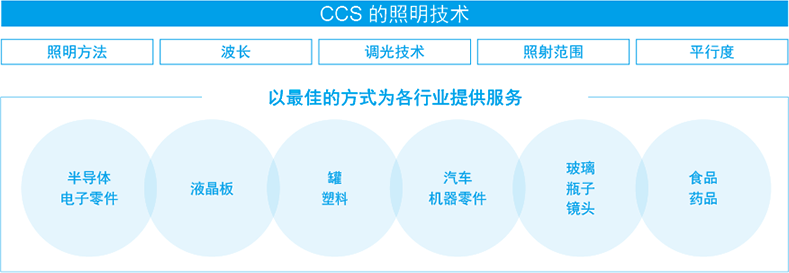 在圖像處理用LED光源領(lǐng)域里,顧客選擇CCS產(chǎn)品的理由是,CCS擁有豐富的照明解決方案和強(qiáng)大的產(chǎn)品開發(fā)能力。為了滿足顧客要拍攝各種圖像和解決各種問題的需要,我公司從超過1,500種的豐富產(chǎn)品陣容中,為您選出最佳光源。此外,CCS還根據(jù)顧客的需 求,提供樣機(jī)的制造及定制光源的設(shè)計(jì)開發(fā)等服務(wù)。 自1993年成立以來,CCS已取得50,000件以上被測(cè)物體成像和10,000多種定制光源的設(shè)計(jì)、開發(fā)、制造業(yè)績(jī),躍居行業(yè)領(lǐng)先企業(yè)。CCS以長(zhǎng)期積攢下的光學(xué)、散熱、控制、評(píng)估等專有技能和技術(shù)經(jīng)驗(yàn)為基礎(chǔ),為顧客提供“最佳光源”。
