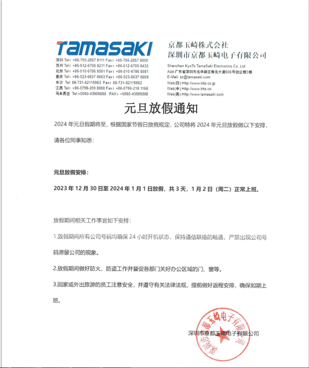 2024年元旦放假通知